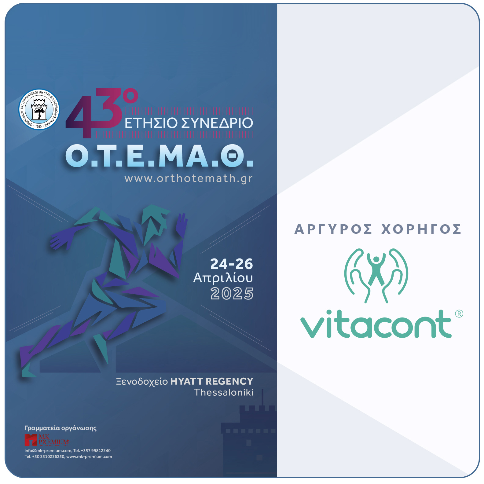 Με υπερηφάνεια ανακοινώνει τη συμμετοχή της ως Αργυρός Χορηγός στο 43ο Συνέδριο ΟΤΕΜΑΘ, “Ορθοπαιδική και Τραυματολογική Εταιρεία Μακεδονίας – Θράκης" που θα πραγματοποιηθεί από τις 24 έως τις 26 Απριλίου 2025, στο Hyatt Regency Θεσσαλονίκης.