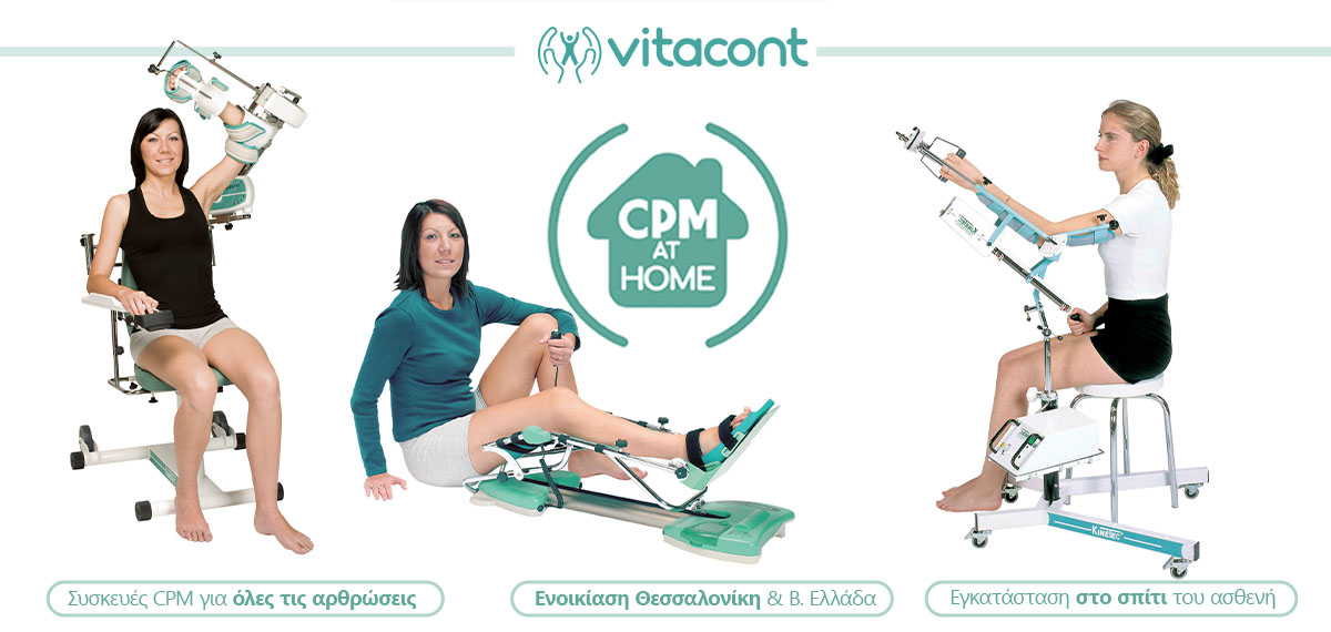 Η Vitacont με την ολοκληρωμένη υπηρεσία ενοικίασης CPM συσκευών CPM at HOME για θεραπεία στο Σπίτι με Συνεχή Παθητική Κινητοποίηση, προσφέρει στους ορθοπεδικούς μετεγχειρητικούς ασθενείς της Θεσσαλονίκης και της Βόρειας Ελλάδας, τη δυνατότητα μιας προηγμένης τεχνολογικά ορθοπεδικής αποκατάστασης, με τη μέγιστη δυνατή ευκολία, στην άνεση του σπιτιού τους.